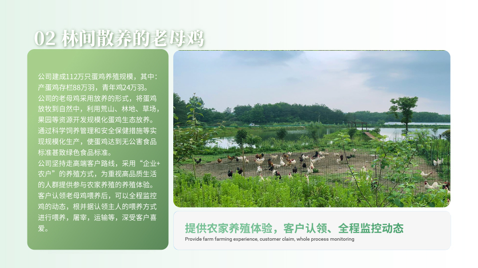 The company continues to expand its business scope to meet customer needs. With the theme of "green, safe and healthy", the company's efforts to launch free-range eggs from Conglin focus on product quality, follow the road of branding, occupy the consumer market, and are committed to being a brand recognized by consumers! At present, Jinshan The brand local egg has already had a certain influence in Anhui, Shanghai, Beijing, Guangzhou and other provinces and cities, and has won unanimous praise from customers!