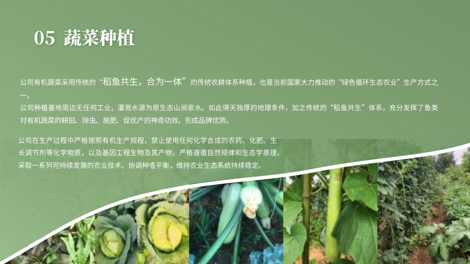 Guided by scientific and technological innovation, the company has always adhered to the development concept of "green agriculture, scientific and technological agriculture, and branded agriculture". Based on a 150-acre base, supported by agricultural technology, and based on market channels, the company operates scientifically to achieve branding and scale. The marketing route of globalization and multi-channels establishes the brand culture of the enterprise.