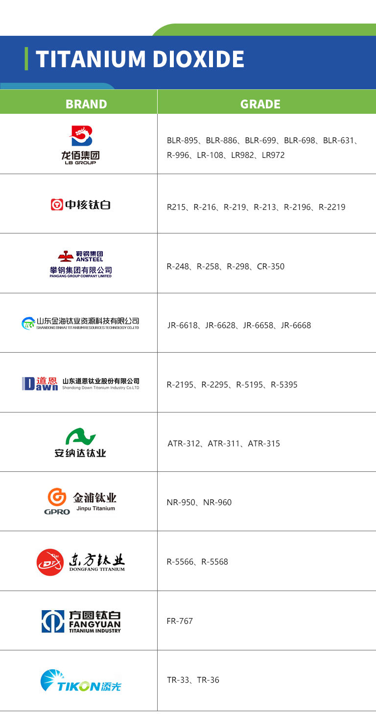 Anhui Union Titanium group offers import and export services for various domestic brands of pigments and paint related products. Our product range includes but is not limited to: titanium dioxide, cellulose ethers, various additives, resins, stearates, metal compounds, flame retardants, and water treatment agents.